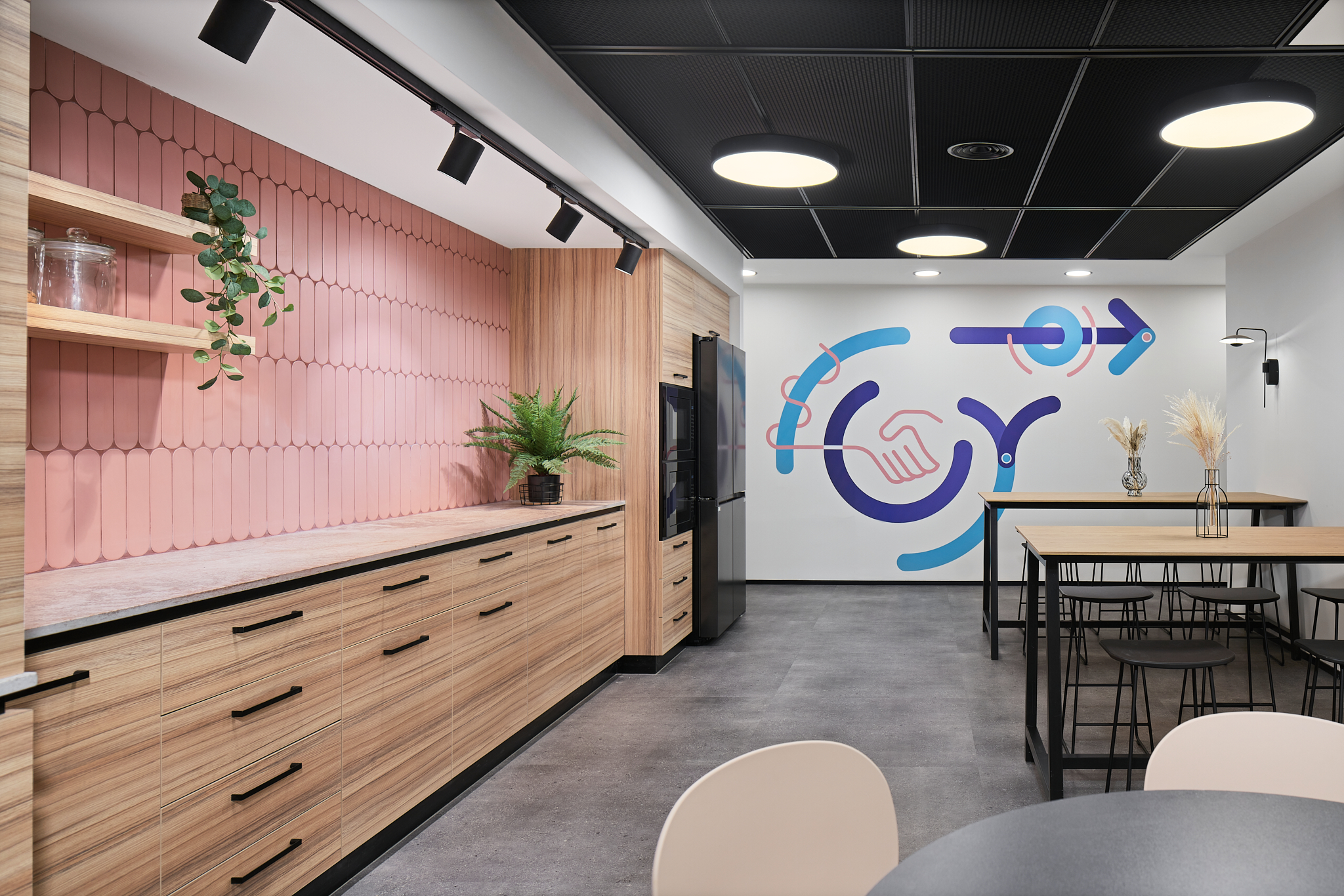 חלל העבודה עוצב כסביבת עבודה פתוחה, עדכנית ומזמינה, הכוללת אזורי עבודה מודולריים, פינות ישיבה אלטרנטיביות, אזורי מנוחה ומרחבים לעבודה שיתופית—תוך שמירה על שפה עיצובית אחידה עם שאר הפרויקט.